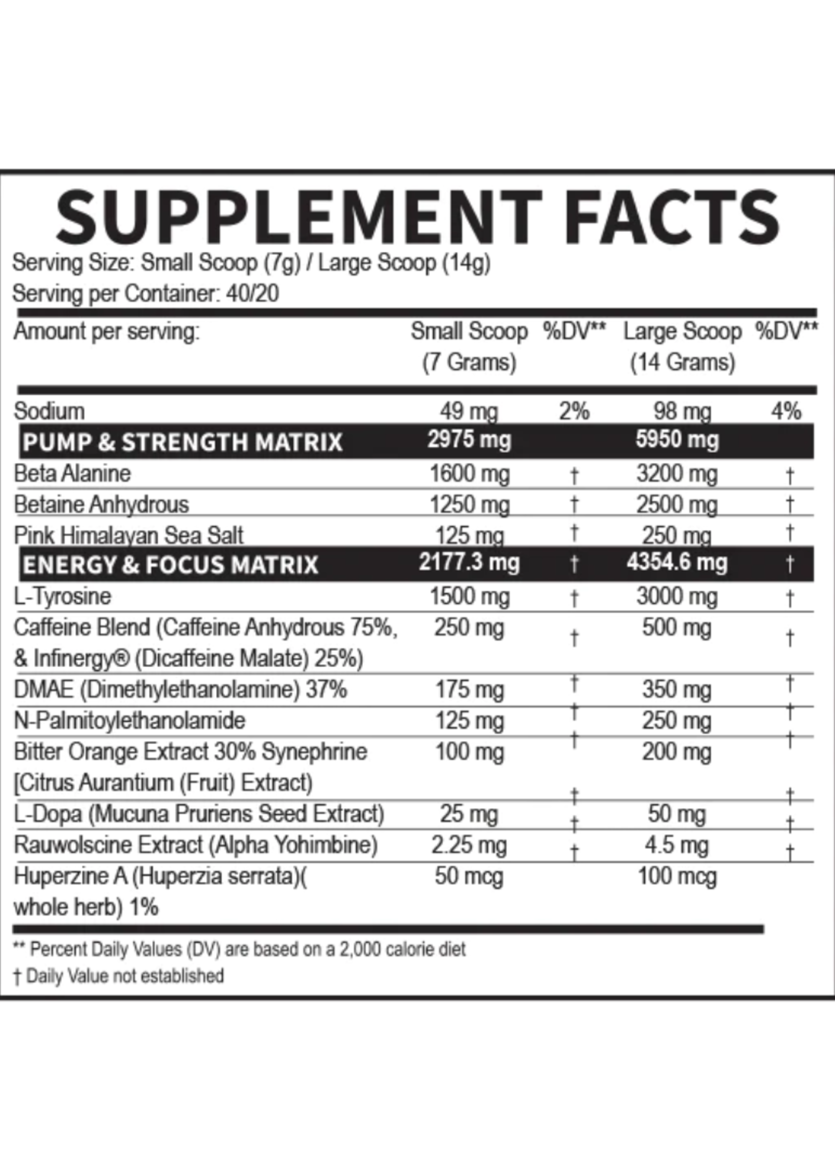 | Nutriente / Ingrediente | Small Scoop (7 g) | Large Scoop (14 g) |