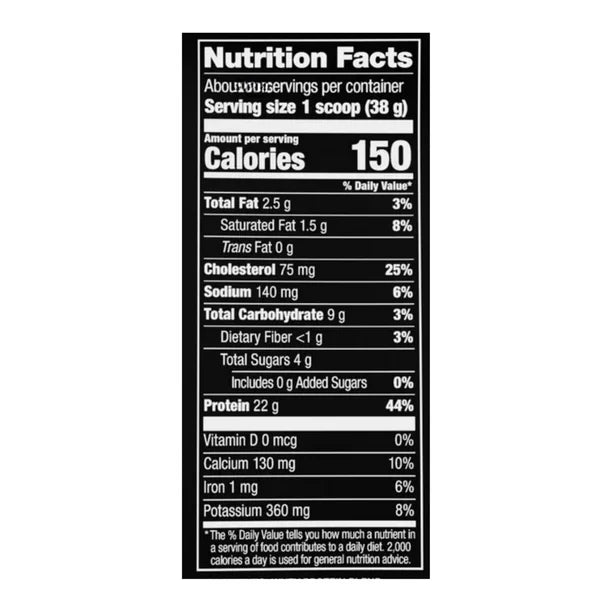 Peso 10 lb ( 4.53 kg) ( $0.39 MXN/gramo) 123 servicios, Porción 36.91g, Proteína de suero de leche