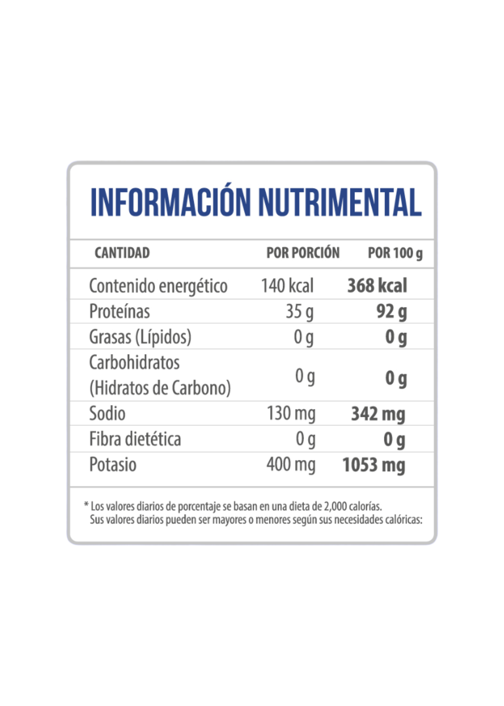 Peso 2.2 lb ( 1kg) ( $0.43MXN) 31 servicios, Porción 32.26, Proteína hidrolizada de suero de leche.